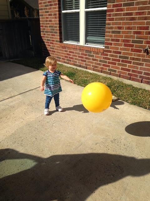 I wish I could have caught their one-sided conversation because it actually made me tear up it was so sweet, but I did get this little snippet which shows Clara's enjoyment of her new ball: